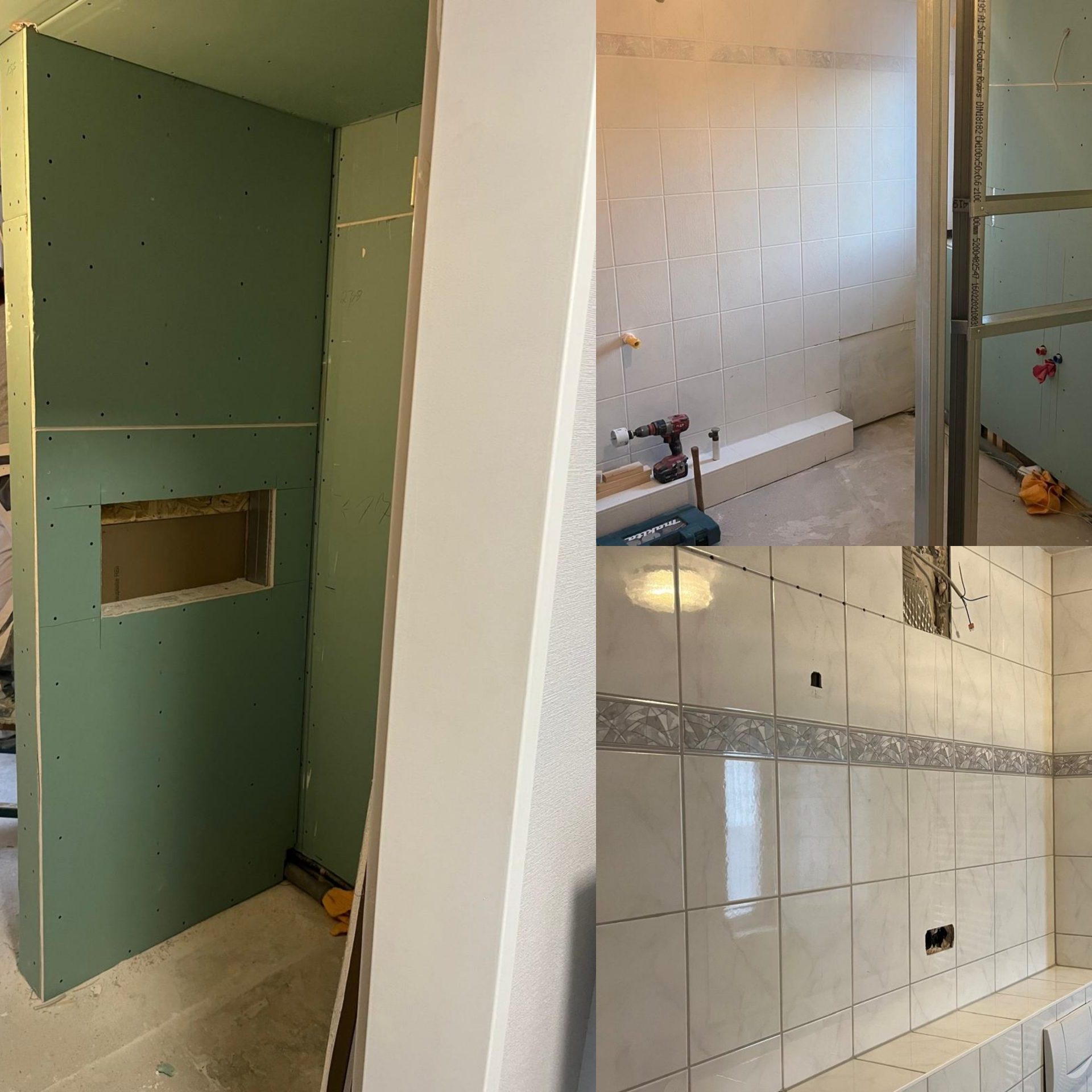 Bei diesem Projekt stand die komplette Erneuerung des Badezimmers im Fokus. Die Dusche wurde modernisiert, Trockenbauarbeiten umgesetzt und ein neuer Boden mit passenden Fliesen verlegt. Durch die sorgfältige Ausführung entstand